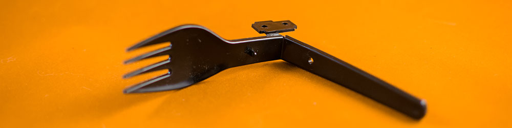 Tout le monde a déjà eu entre ses mains une fourchette en plastique démontable. J'entends par là une fourchette qui soit découpée en deux morceaux qui, une fois imbriqués l'un dans l'autre, forment la fourchette complète. Issues très souvent de salades en barquette, elles permettent de prendre moins de place dans l'emballage.
